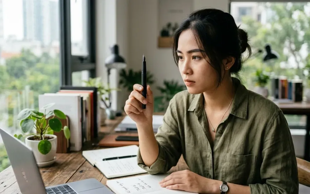 Cầm một vật nhỏ như cây bút ở khoảng cách gần, tập trung nhìn trong vài giây rồi chuyển sang quan sát một vật ở xa. Lặp lại liên tục trong 2-3 phút giúp tăng cường khả năng điều tiết và linh hoạt của mắt.