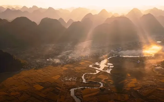 Đặc điểm độc đáo của Bắc Sơn là người dân không trồng lúa cùng lúc. Do đó, vào mùa thu hoạch, cánh đồng nơi đây giống như một bảng pha màu tự nhiên với đủ các sắc thái rực rỡ, được ôm trọn bởi những dãy núi đá vôi xanh thẫm, nhấp nhô như những con rồng khổng lồ đang uốn lượn.