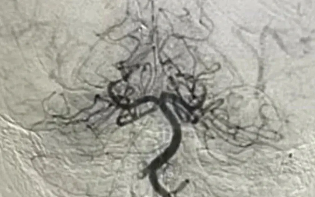 Bệnh viện lập tức hội chẩn liên chuyên khoa và chỉ định chụp mạch máu não số hóa xóa nền (DSA) để đánh giá chính xác tình trạng tắc mạch. Sau đó, bệnh nhi được can thiệp nội mạch cấp cứu. Các bác sĩ luồn ống thông qua động mạch đùi, tiếp cận vị trí tắc ở động mạch đốt sống, sử dụng thuốc tiêu sợi huyết tại chỗ kết hợp dụng cụ chuyên biệt để lấy huyết khối, tái thông dòng máu lên não.