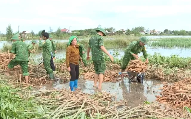 Giữa mưa lũ, những chiếc áo xanh biên phòng vẫn lấm lem bùn đất, không quản ngại vất vả. Từng người lính vẫn âm thầm bám ruộng, chạy đua với thời gian, với mong muốn giảm thiểu thiệt hại cho bà con.