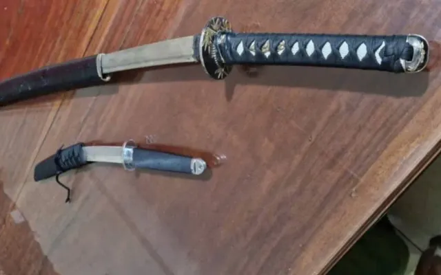 Lực lượng chức năng đã nhanh chóng áp sát, khống chế được 2 đối tượng đi trên một xe máy không đội mũ bảo hiểm, phương tiện không gắn biển kiểm soát. Qua kiểm tra, công an phát hiện người ngồi sau mang theo dao và kiếm.