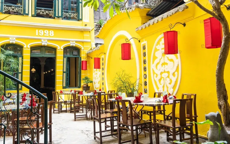 Không gian bữa tối mang đậm nét hoài cổ khi nhà hàng nằm trong căn nhà xây từ năm 1928, với tường vàng và sân vườn rộng. Trên bàn ăn, nhân viên chuẩn bị cả đũa lẫn dao nĩa để khách tùy chọn. Ông Antonio Costa thoải mái sử dụng đũa để thưởng thức món ăn.