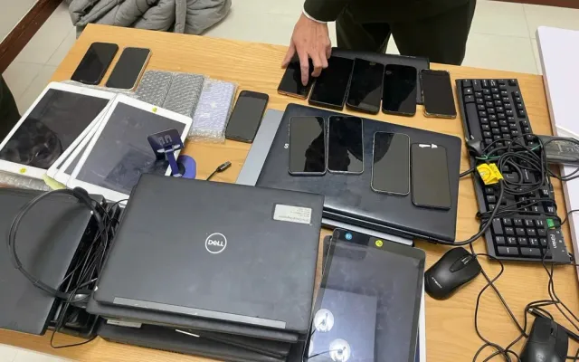 Tại căn BT1-D64, tổ công tác phát hiện 5 người nước ngoài gồm 4 người Hàn Quốc và 1 người Trung Quốc không xuất trình được hộ chiếu. Lực lượng chức năng thu giữ 17 máy tính xách tay, 14 máy tính bảng và 25 điện thoại di động có dấu hiệu liên quan đến hoạt động công nghệ cao trái phép tại Việt Nam.