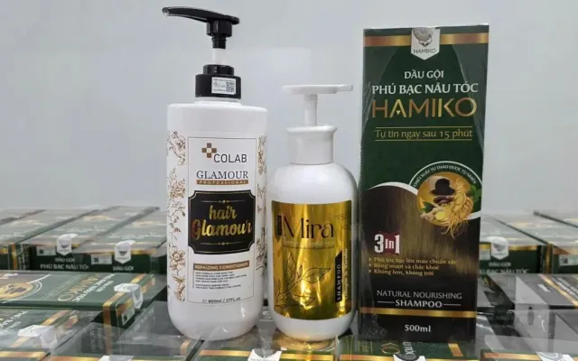 Qua kiểm tra xưởng sản xuất tại ô số 6, lô ĐNN, Cụm công nghiệp Hà Khánh, phường Cao Xanh, tỉnh Quảng Ninh, lực lượng chức năng thu giữ gần 3.000 chai thuốc nhuộm tóc giả nhãn “Dầu gội phủ bạc nâu tóc Hamiko”, 960 chai dầu gội nhãn hiệu “Mira” và 504 chai dầu gội “Colab Glamour”, đều có dấu hiệu không bảo đảm chất lượng.