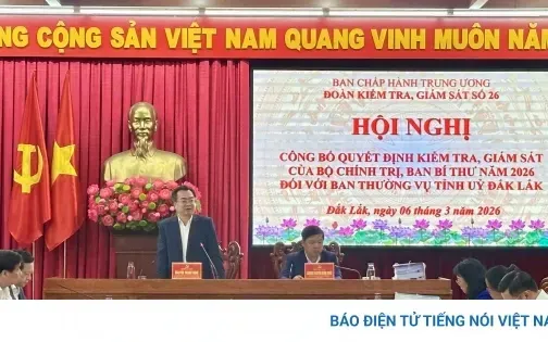 Chiều 6/3, Đoàn kiểm tra, giám sát số 26 của Bộ Chính trị, Ban Bí thư do Ủy viên Bộ Chính trị, Bí thư Trung ương Đảng, Trưởng Ban Chính sách, chiến lược Trung ương Nguyễn Thanh Nghị làm Trưởng đoàn đã công bố Quyết định kiểm tra, giám sát năm 2026 đối với Ban Thường vụ Tỉnh ủy Đắk Lắk.