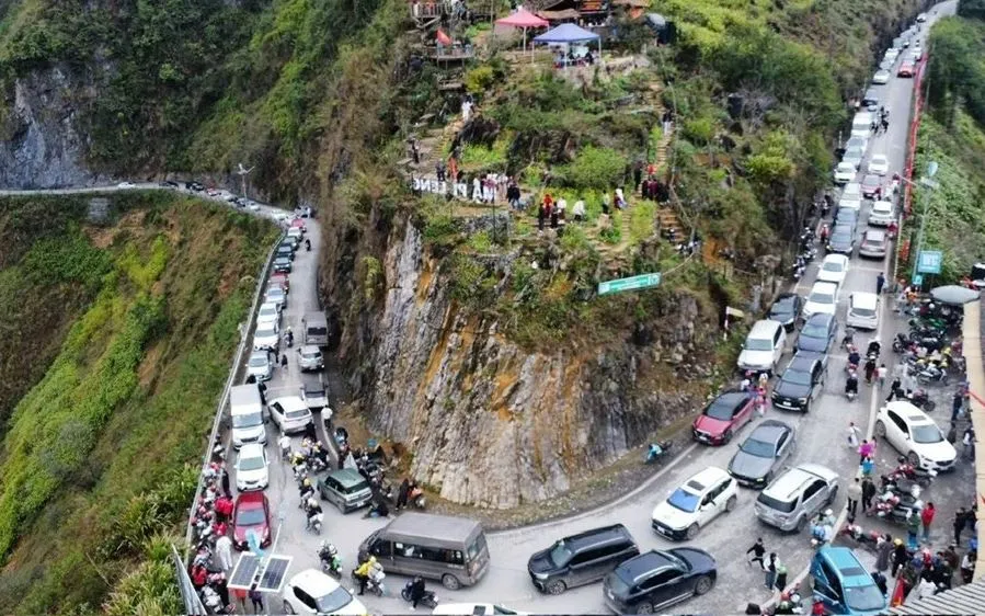 Trên cung đường Đèo Mã Pì Lèng – một trong những tuyến đèo ngoạn mục nhất Việt Nam – cảnh tượng phổ biến trong cao điểm lễ Tết lại là ôtô xếp hàng dài giữa lưng chừng núi. Nhiều du khách cho biết họ mất hơn một giờ chỉ để đi vài kilomet. Các đoàn khách đến tối vẫn chưa tìm được nơi nghỉ tại Đồng Văn do toàn bộ khách sạn, homestay đều kín chỗ.