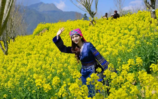 Hoa cải mèo nở rộ, óng ánh dưới nắng xuân như mật ngọt, phủ kín triền đồi. Đẹp nhất vào khoảng tháng 3, những dải vàng rực rỡ ấy trở thành điểm nhấn khó quên giữa không gian núi rừng Sa Pa, khiến bất cứ ai cũng muốn dừng chân chụp ảnh, lưu giữ khoảnh khắc.