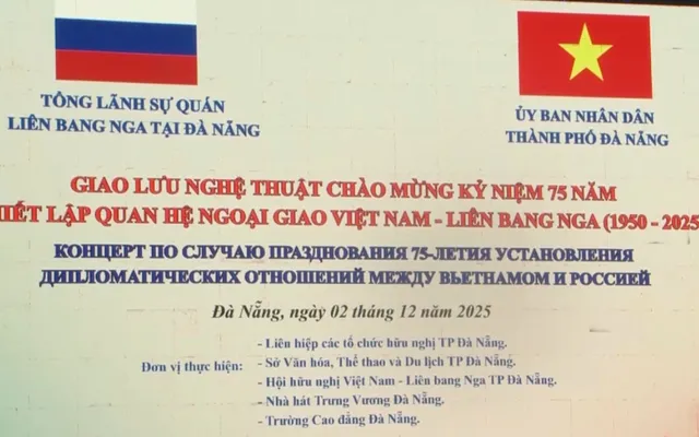 VTV.vn - Tối qua (ngày 02/12), tại thành phố Đà Nẵng, Liên hiệp các tổ chức hữu nghị thành phố Đà Nẵng và Tổng Lãnh sự quán Liên bang Nga tại Đà Nẵng đã tổ chức chương trình giao lưu nghệ thuật đặc sắc nhằm kỷ niệm 75 năm thiết lập quan hệ ngoại giao giữa Việt Nam và Liên bang Nga. Sự kiện không chỉ là dấu ấn văn hóa mà còn tái khẳng định mối quan hệ Đối tác Chiến lược Toàn diện bền chặt giữa hai quốc gia.