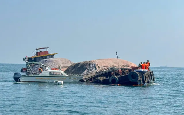 Đến 11h20, lực lượng cứu hộ, cứu nạn đã tiếp cận được hiện trường. Lúc này, tàu vận tải mang số hiệu Hoàng Đạo 36, số đăng ký HD-5556, do ông Hoàng Văn Đạo (SN 1971, trú tại Thanh Hà, Hải Phòng) làm thuyền trưởng, trên tàu có 3 thuyền viên, vận chuyển 1.247 tấn tro xỉ nhiệt điện, đang trong tình trạng bị nghiêng sang phải, nước tràn mạnh vào khoang mũi do va vào đá ngầm tại khu vực Cồn Nhện dẫn đến sự cố rách vỏ tàu mạn bên trái. Tổ cứu hộ, cứu nạn đã phối hợp với thuyền viên nỗ lực bơm nước chống chìm, đồng thời nhanh chóng liên hệ, huy động máy nổ, máy bơm hút nước công suất lớn của người dân và thợ lặn chuyên nghiệp để xử lý sự cố. Đến 12h35 cùng ngày, thợ lặn cùng các trang thiết bị máy móc đã được triển khai hiệu quả, khắc phục tạm thời vết rách, ngăn chặn nước tràn vào khoang, giúp tàu tránh được nguy cơ chìm đắm, đảm bảo an toàn cả người và hàng hóa, tránh nguy cơ ô nhiễm môi trường biển từ lượng lớn tro xỉ trên tàu.