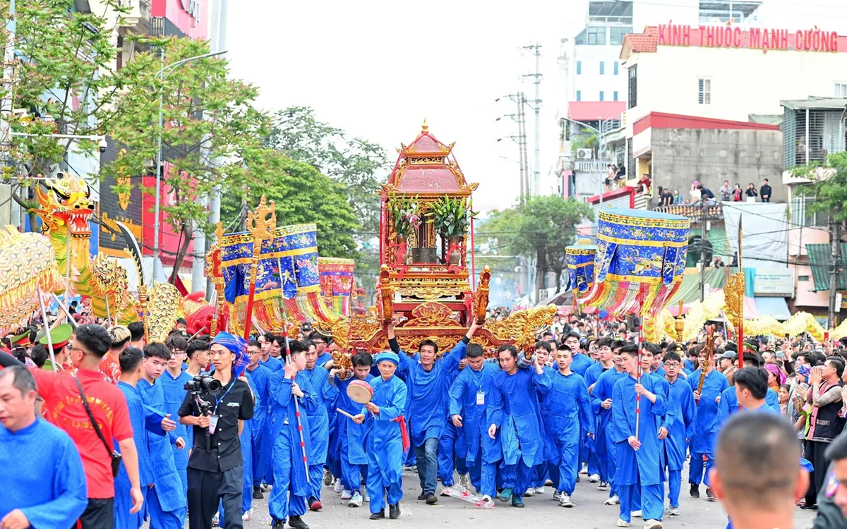 Đoàn rước có sự tham gia của đông đảo người dân địa phương, với kiệu được rước nhiều vòng trước cửa đền Kỳ Cùng theo nghi lễ truyền thống. Hai bên đường, người dân và du khách kiên nhẫn chờ đợi để được tận mắt chứng kiến khoảnh khắc linh thiêng này.