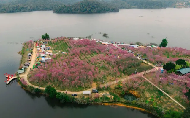 Ngay vào cuối tháng 12-2025, hòn đảo nhỏ giữa lòng hồ thủy điện Pá Khoang, xã Mường Phăng, tỉnh Điện Biên rực rỡ sắc hồng của cả rừng hoa anh đào Nhật Bản. Dù cách trung tâm tỉnh Điện Biên khoảng 20 km, nơi được mệnh danh là “đảo hoa” đã trở thành địa điểm được du khách và người dân địa phương tìm đến.