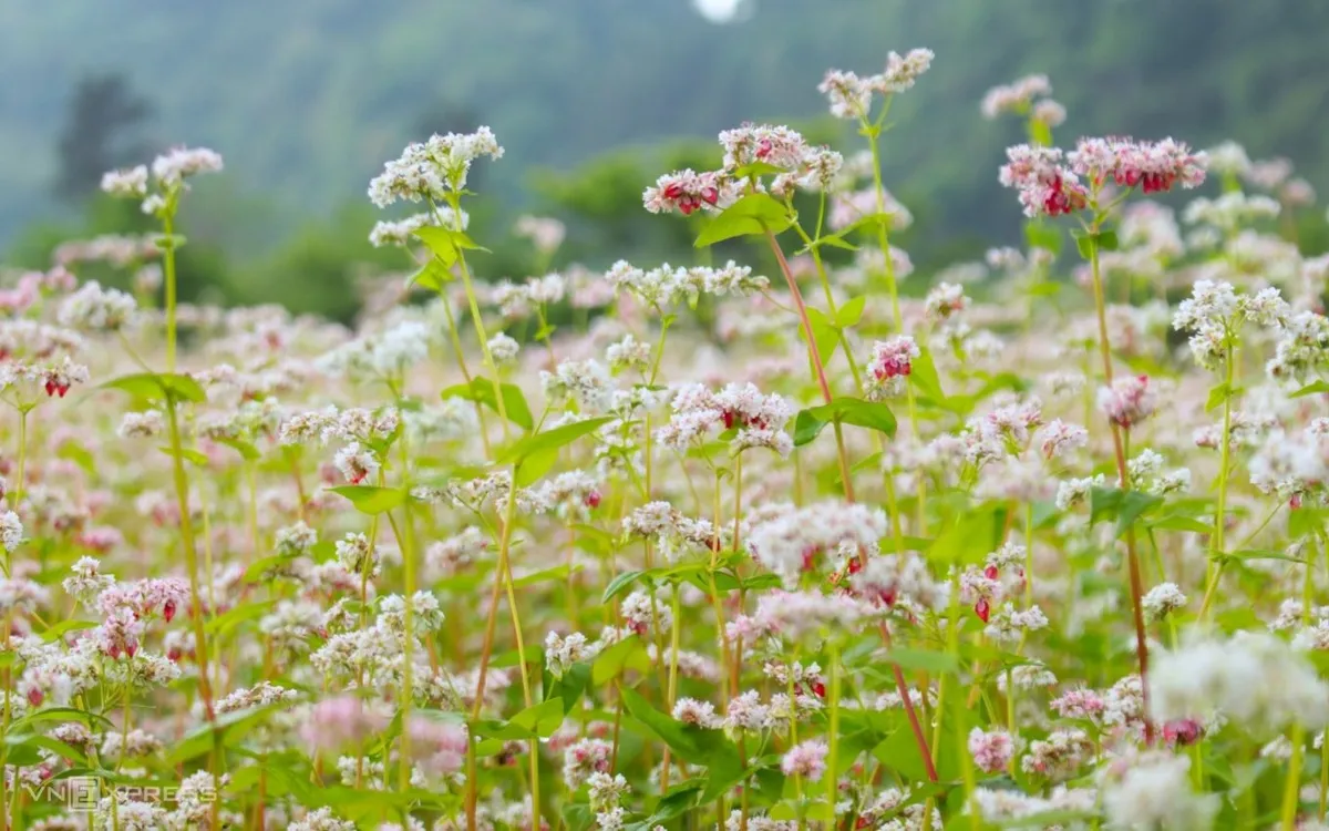 Không rực rỡ như mùa chính vụ cuối năm, hoa tam giác mạch thời điểm này mang gam màu nhẹ nhàng hơn với sắc trắng tinh khôi, điểm xuyết hồng nhạt và tím phớt. Trên nền đá xám đặc trưng của vùng cao, những triền hoa hiện lên mềm mại, tạo nên bức tranh thiên nhiên hài hòa và thanh thoát.