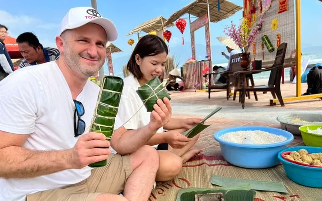 Người dân và du khách có thể trực tiếp tham gia các hoạt động trải nghiệm như gói bánh chưng, bánh tét, làm mứt truyền thống, thưởng thức món ngon ngày Tết tại khu gian hàng ẩm thực. Du khách còn được thử đan lưới cùng ngư dân, cảm nhận nét sinh hoạt đặc trưng của vùng biển.