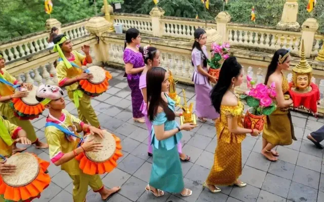 Tiếng nhạc ngũ âm vang lên như lời mời gọi các vị thần linh, đồng thời thôi thúc bước chân của những người đi hội. Dưới ánh đèn lung linh của sân chùa, điệu múa lăm-vông duyên dáng bắt đầu, nơi mà bất kỳ ai, dù là người bản địa hay du khách phương xa, đều có thể cùng nắm tay nhau vào vòng xoang thân ái.