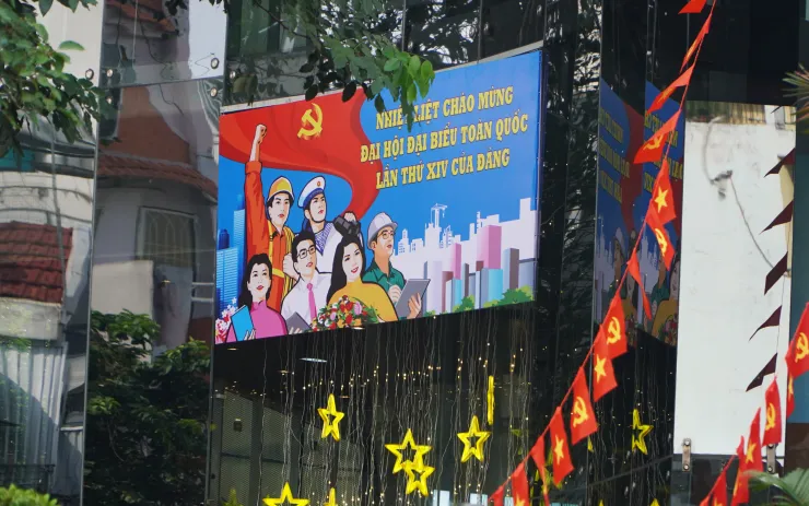 Rực rỡ sắc màu cờ hoa chào mừng Đại hội XIV của Đảng trên khắp cả nướcGhi nhận trong sáng 19-1, khu vực trung tâm TPHCM như quận 1, quận 3, quận 5 cho đến nhiều quận, huyện, TP Thủ Đức đều được trang hoàng rực rỡ với cờ Đảng, cờ Tổ quốc, pano, băng rôn, khẩu hiệu chào mừng Đại hội XIV. Từ các tuyến đường chính đến những con hẻm nhỏ, không khí phấn khởi hiện rõ, tạo nên bức tranh sinh động, trang nghiêm và đầy tự hào.