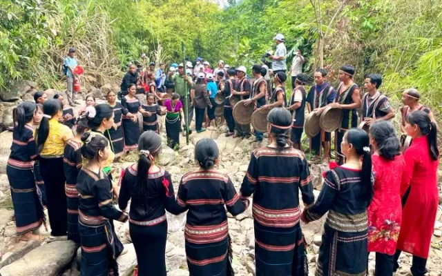 Lễ cúng diễn ra trong khoảng 20 phút, gửi gắm ước mong một năm mới bình an, khỏe mạnh, mùa màng thuận lợi. Sau nghi lễ, người dân cùng nhau thưởng thức các món ăn truyền thống như thịt nướng, cơm lam và hòa mình vào điệu múa xoang dưới tán rừng già.