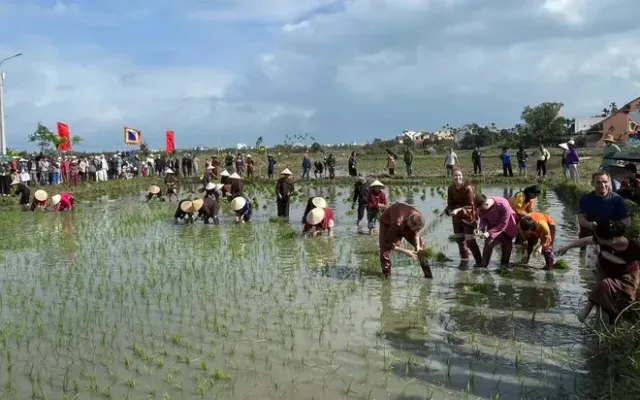 Lễ hội bắt đầu bằng các nghi thức cúng tế Thần Nông và Thành Hoàng làng trang trọng do các vị cao niên thực hiện, nhằm tri ân tiền nhân và cầu nguyện cho mùa màng bội thu. Ngay sau phần lễ, không khí bùng nổ tại phần hội với sự tham gia của đông đảo du khách quốc tế. Nhiều khách du lịch châu Âu đã hào hứng xắn quần lội bùn, trải nghiệm cảm giác cưỡi trâu, cấy mạ và điều khiển máy cày cùng nông dân địa phương. Sự kết hợp này đã tạo nên một hình ảnh đẹp về sự giao thoa văn hóa, nơi những giá trị mộc mạc của làng quê Việt Nam trở thành sức hút đặc biệt với bạn bè thế giới.