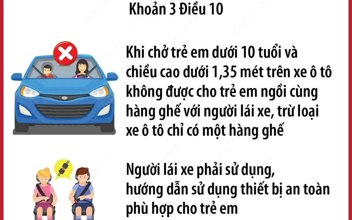 Chủ phương tiện và tài xế có trách nhiệm trang bị ghế an toàn phù hợp cũng như hướng dẫn trẻ sử dụng đúng cách. Hành vi vi phạm có thể bị xử phạt từ 800.000 đến 1.000.000 đồng.