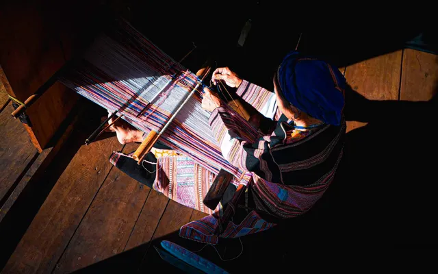 Hình ảnh đẹp nhất nơi đây chính là những người phụ nữ Bana, Hrê miệt mài bên khung dệt gỗ thô sơ ngay dưới hiên nhà sàn. Để có một tấm thổ cẩm ưng ý, họ phải trải qua hàng tháng trời, từ khâu chọn sợi, nhuộm màu từ lá cây, vỏ rừng cho đến khi dệt từng đường thoi nhịp nhàng. Mỗi tấm vải đều mang theo tâm tình, sự kiên nhẫn và cả niềm tự hào về cội nguồn dân tộc.