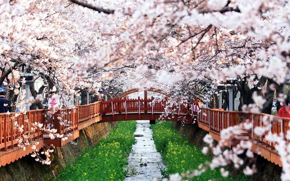 Tại các khu vực miền Trung như Daejeon và Jeonju, hoa sẽ nở trong khoảng từ 28 đến 31/3. Điểm đến nổi bật tại khu vực này là Jeonju Hanok Village, nơi du khách có thể vừa ngắm hoa anh đào vừa trải nghiệm không gian văn hóa truyền thống.
