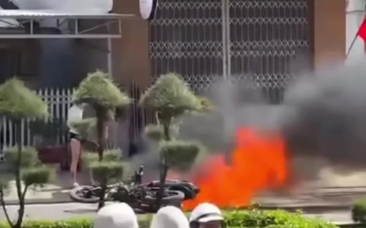Tuy nhiên, Thắng không chấp hành mà liên tục có hành vi xông tới, đe dọa và chửi bới lực lượng chức năng. Sau đó, người này đạp ngã xe máy, châm lửa vào bình xăng khiến ngọn lửa bùng lên bao trùm phương tiện.