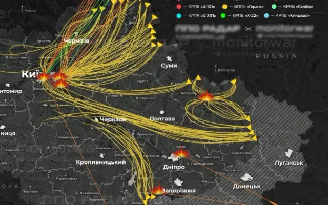 Cùng ngày, Bộ tư lệnh không quân Ukraine thông báo Nga đã phóng hai tên lửa đạn đạo chiến thuật Iskander-M hoặc S-300 hoán cải, cùng 102 UAV tự sát và mồi bẫy. “Các đơn vị phòng không đã bắn hạ 87 phi cơ, 15 chiếc còn lại đánh trúng 10 địa điểm. Chúng tôi đang làm rõ thông tin về hai tên lửa”, cơ quan này cho hay.