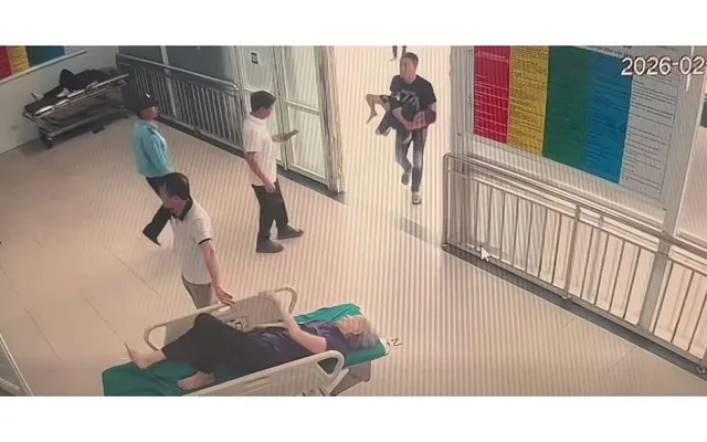 Camera tại bệnh viện đã ghi lại cảnh anh Bình bế cháu bé vào khu cấp cứu. Nhờ được đưa tới kịp thời, các bác sĩ đã lấy dị vật trong cổ họng của cháu bé. Sau khi tình trạng sức khỏe ổn định, anh Bình tiếp tục chở cháu cùng người thân về nhà sau khi hoàn tất việc thăm khám.