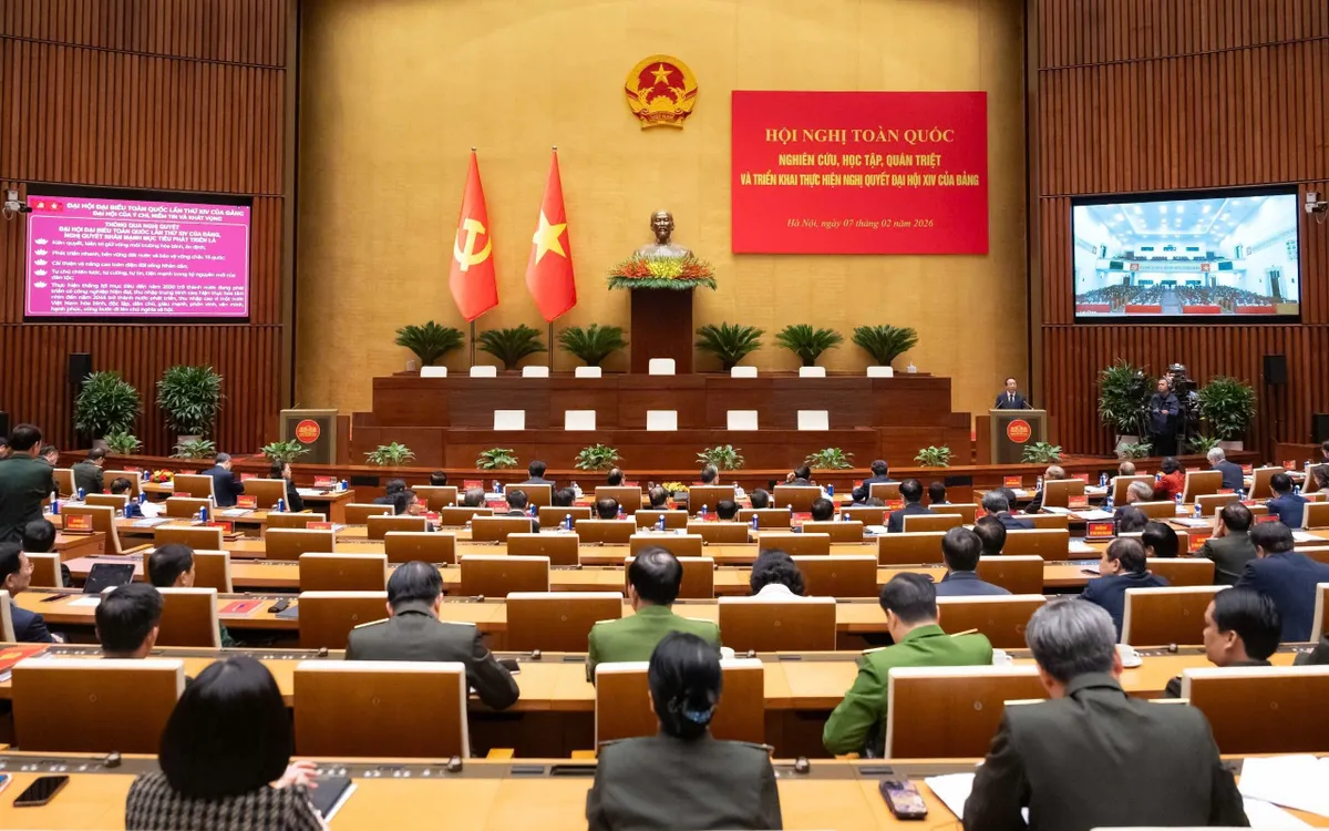 Sáng 7/2, tại Hội trường Diên Hồng (Nhà Quốc hội), Bộ Chính trị, Ban Bí thư Trung ương Đảng tổ chức Hội nghị toàn quốc nghiên cứu, học tập, quán triệt và triển khai thực hiện Nghị quyết Đại hội XIV của Đảng.