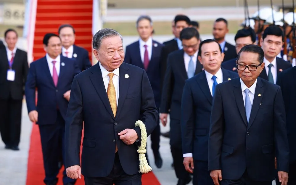 Ngay khi tới sân bay, Tổng Bí thư Tô Lâm, Thủ tướng Phạm Minh Chính và Chủ tịch Quốc hội Trần Thanh Mẫn đã đi dọc thảm đỏ giữa hàng quân danh dự và bắt tay các đại biểu ra đón. Khu vực sân bay được trang hoàng với quốc kỳ hai nước. Đông đảo người dân Campuchia có mặt, mang theo cờ, hoa và hình ảnh để chào mừng đoàn đại biểu cấp cao Việt Nam.