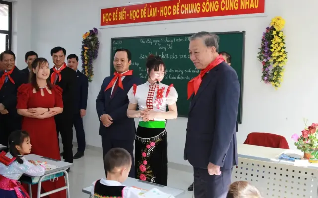 Phát biểu tại buổi lễ, Tổng Bí thư Tô Lâm nhấn mạnh đây là ngôi trường đầu tiên trong chương trình xây dựng 248 trường nội trú liên cấp tại các xã biên giới, thể hiện sự quan tâm sâu sắc của Đảng và Nhà nước đối với giáo dục vùng đồng bào dân tộc thiểu số, miền núi và biên giới.