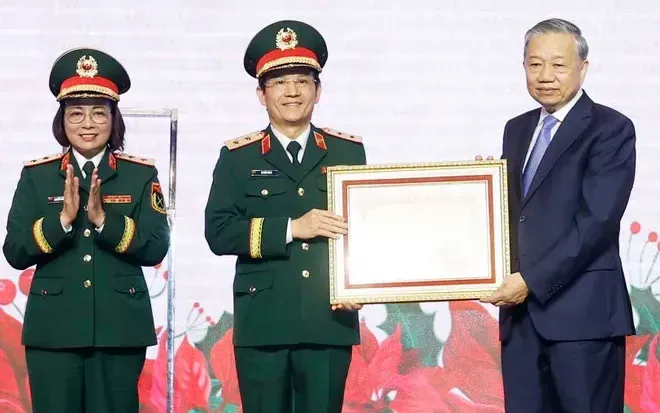 Tại buổi lễ, Tổng Bí thư Tô Lâm đã trao tặng Huân chương Hồ Chí Minh (lần thứ hai) cho Bệnh viện Trung ương Quân đội 108, ghi nhận những đóng góp đặc biệt xuất sắc của đơn vị đối với sự nghiệp cách mạng.