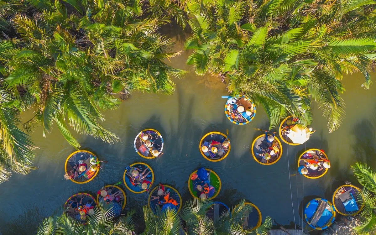 Cảm giác ngồi trên những chiếc thuyền thúng tròn xoe, dập dềnh trên làn nước xanh biếc để len lỏi vào những rặng dừa kín đáo mang lại một sự thích thú đặc biệt đối với mọi du khách. Không gian tĩnh lặng của rừng dừa chỉ được phá vỡ bởi tiếng mái chèo khua nước và tiếng chim hót lảnh lót trên những ngọn lá xanh mướt. Đây là lúc du khách có thể hoàn toàn rũ bỏ những ồn ào của phố thị để hòa mình vào hơi thở của đất trời.