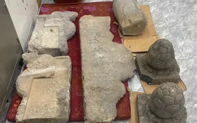Các hiện vật bị lấy gồm một bức tranh đá điêu khắc hình váy ô sa, hai con nghê đá, một bát hương đá cùng nhiều phiến đá chạm khắc họa tiết rồng mây, búp sen, rồng và hổ.