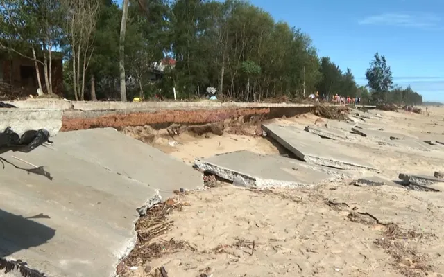 VTV.vn - Tại nhiều khu vực ven biển tỉnh Quảng Ngãi, sau khi bão số 13 đi qua, triều cường kết hợp với lốc xoáy đã gây ra tình trạng sạt lở nghiêm trọng, ảnh hưởng trực tiếp đến đời sống và tài sản của người dân.