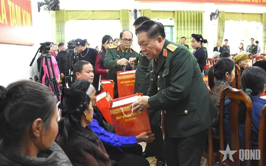 Đại tướng Nguyễn Trọng Nghĩa trao quà tặng các gia đình chính sách, người có công